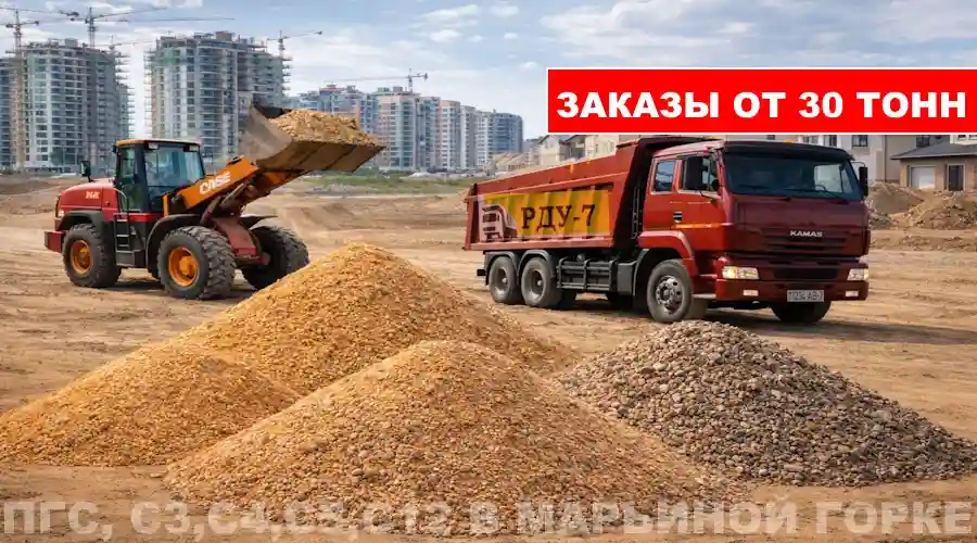 Компания «РДУ-7» гарантирует ритмичную доставку ПГС и песчано-гравийных смесей в Марьину Горку, Пуховичский район и другие населённые пункты Минской области. Работаем напрямую с карьеров — без посредников и скрытых наценок.