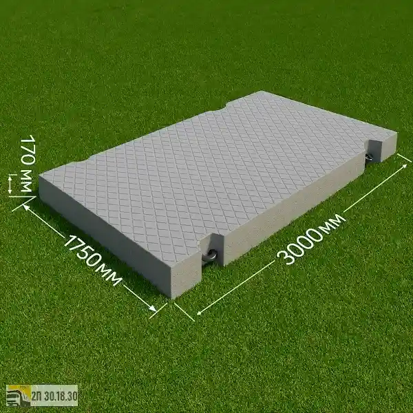 Дорожная плита 2П 30.18.30 — это железобетонное изделие, предназначенное для устройства временных и постоянных дорог, подъездных путей, строительных площадок, складских территорий и промышленных зон.