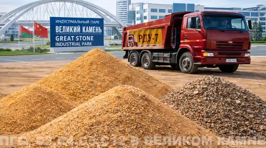 Компания «РДУ 7» обеспечивает стабильную доставку ПГС и песчано-щебёночных смесей в индустриальный парк «Великий Камень», Смолевичский район и пригороды столицы.
